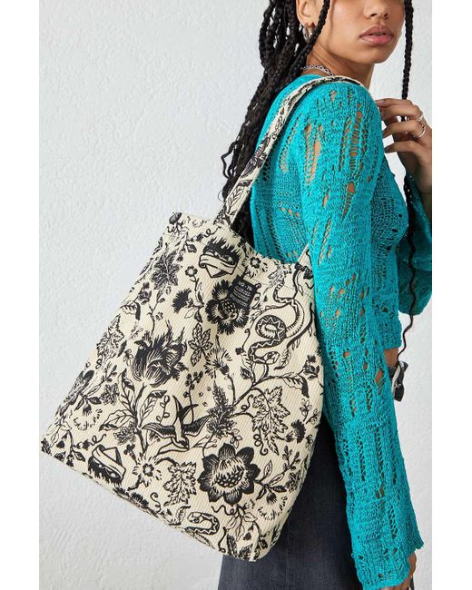 Urban Outfitters Uo Tattoo Print Corduroy Tote Bag In Blue Lyst Uk